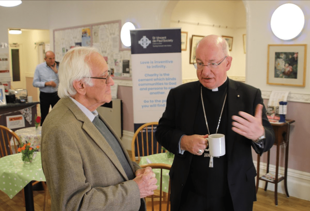 Bishop Richard joined Georgina, Duchess of Norfolk, at the St Vincent de Paul Centre in Brighton on 25 September, to visit the charity’s dedicated over-50s community hub. Known to locals as Tower House, the Grade II listed building offers a lifeline to people across the community, providing specialist services which include HERE’s Stroke & Musculoskeletal Disorders Peer Support Group, Age UK’s Dementia Daybreak service, an SVP Carer’s Support Group and an Art Therapy Group run by Starling Arts.